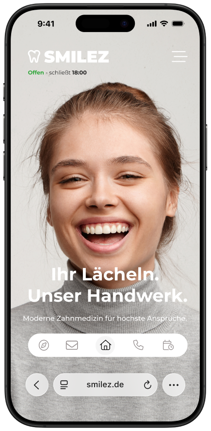 Sie verzichtet bewusst auf unnötige Inhalte und zu viele Unterseiten und setzt stattdessen auf eine intuitive Navigation, die Patienten direkt zum Ziel führt – ob Terminbuchung, Anruf-Button oder Infos zu Behandlungen. Das moderne Design wird individuell an die Praxis angepasst und verbindet zeitgemäße Ästhetik mit klarer Funktionalität.